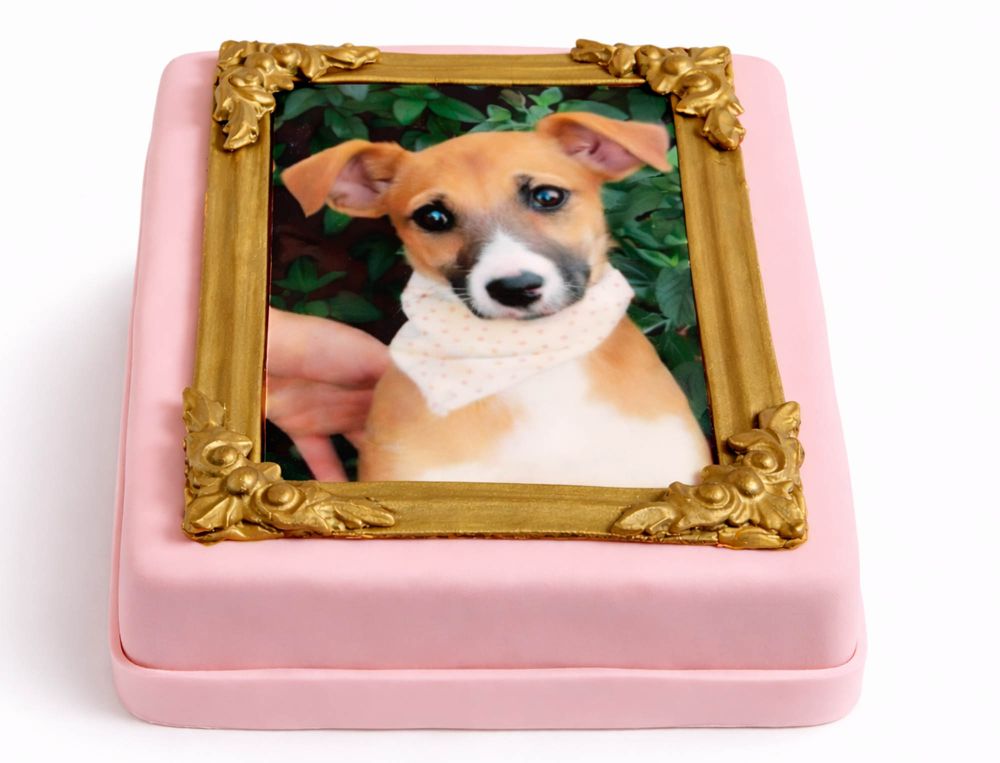 Besonders beliebt ist dieses Design als Tierfototorte, weil ein Hundefoto oder anderes Haustiermotiv darin wie ein liebevoll gerahmtes Portrait erscheint. Gleichzeitig eignet sich die Torte genauso gut für Kinderfotos, Paarbilder oder Familienmotive. So bleibt das Produkt vielseitig und spricht unterschiedliche Suchintentionen sauber an.