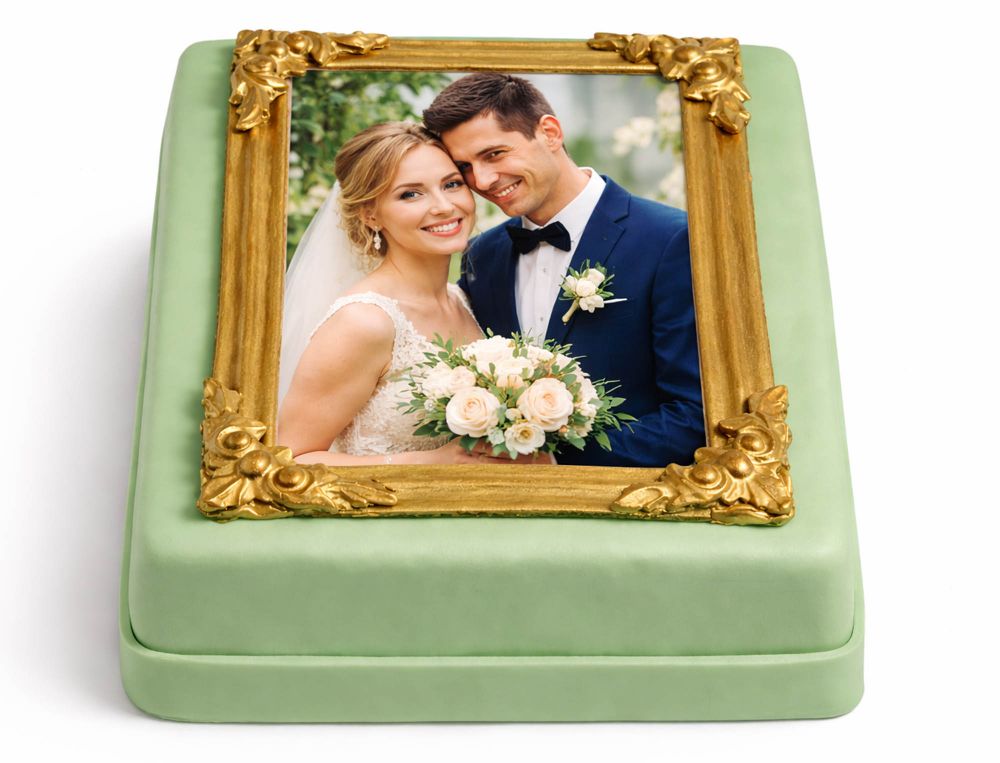 Diese gerahmte Fototorte verwandelt dein Lieblingsbild in ein persönliches Tortenmotiv mit besonderer Wirkung. Das Foto wird optisch wie ein kleines Portrait inszeniert und von einem dekorativen Rahmen eingefasst. So entsteht eine Fototorte mit eigenem Foto, die nicht nur individuell aussieht, sondern auch sofort emotional berührt.