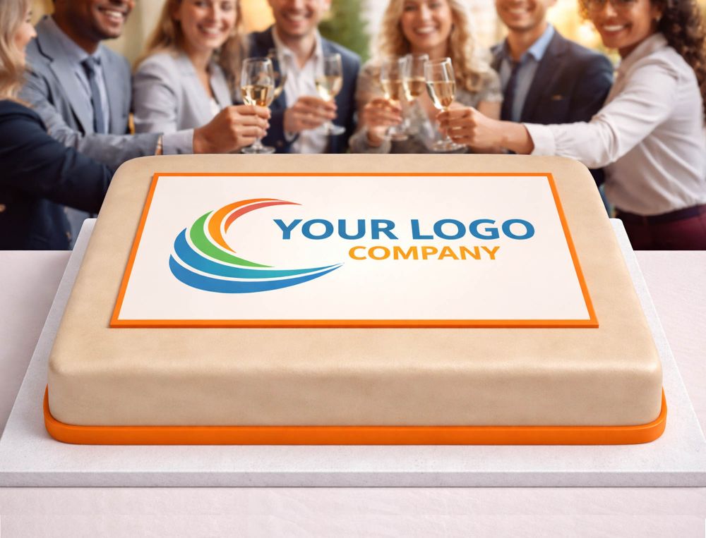 Auch als Werbetorte für Unternehmen, Praxen, Vereine oder Events ist sie eine starke Lösung. Logos, Kampagnenmotive oder Produktbilder lassen sich auf der rechteckigen Fläche besonders wirkungsvoll präsentieren und sorgen für Aufmerksamkeit auf Messen, Eröffnungen und Jubiläen.