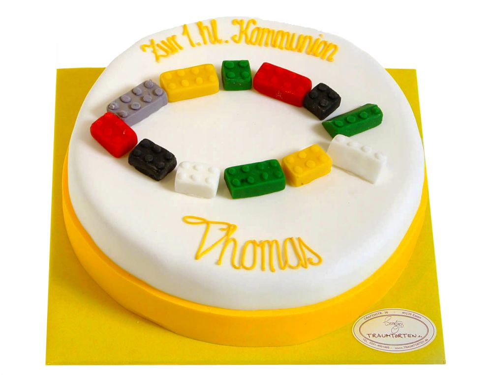 Für junge Menschen gestaltet, die an ihrem Kommuniontag etwas Persönliches und Modernes erleben sollen, begleitet diese Torte einen wichtigen Schritt im Glaubensleben. Das Fischmotiv aus farbigen Bausteinen spricht spielerisch an, ohne den Anlass zu verlieren, und sorgt beim Überreichen für sichtbare Freude und echte Aufmerksamkeit beim Kommunionkind.