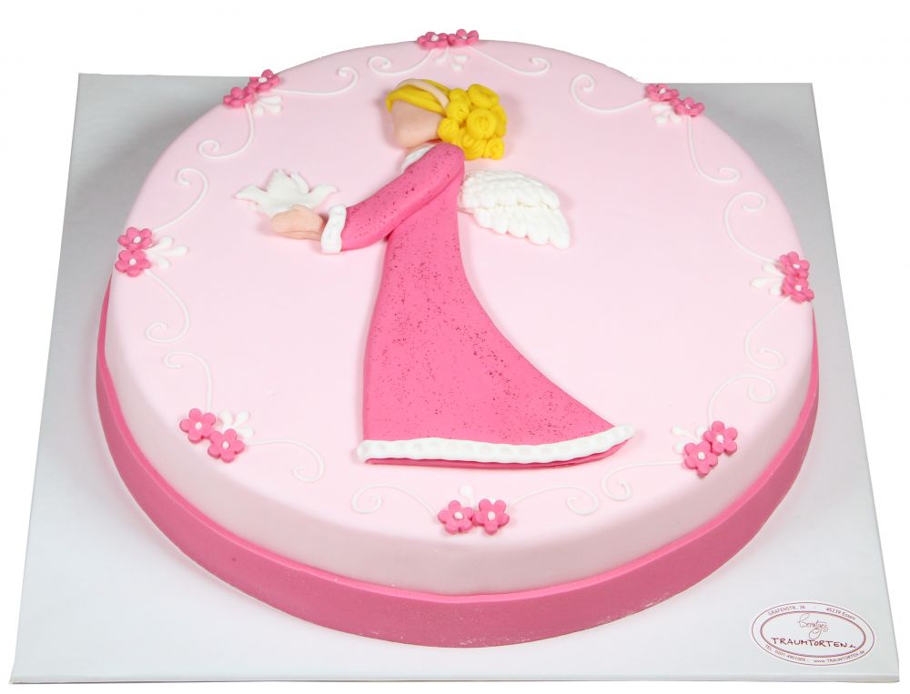 Motivtorte zur Kommunion mit Mädchen und Taube