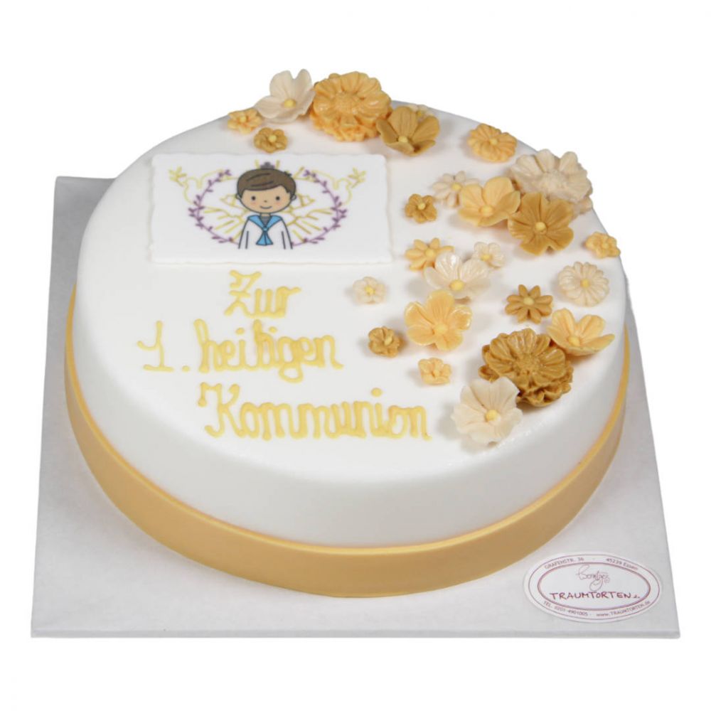 Motivtorte zur Kommunion in warmen Gelbtönen