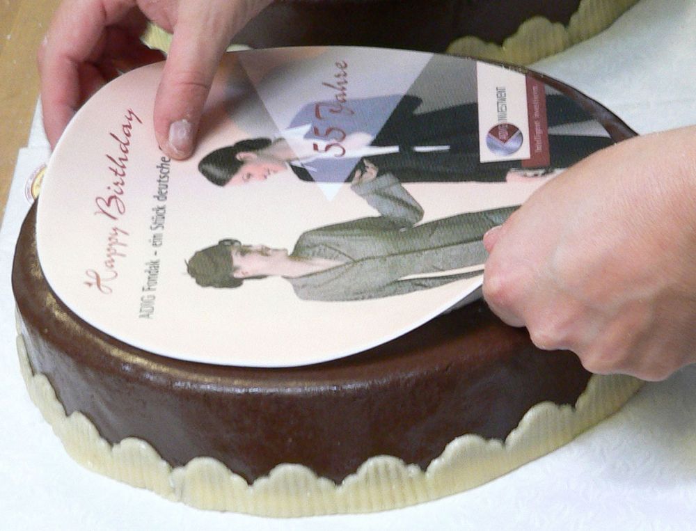 Dein persönliches Wunsch-Foto als runder Druck mit Lebensmittelfarben auf einer geschmeidigen Fondantplatte - einfach Transportfolie abziehen und auf Deine selbstgemachte Torte auflegen.