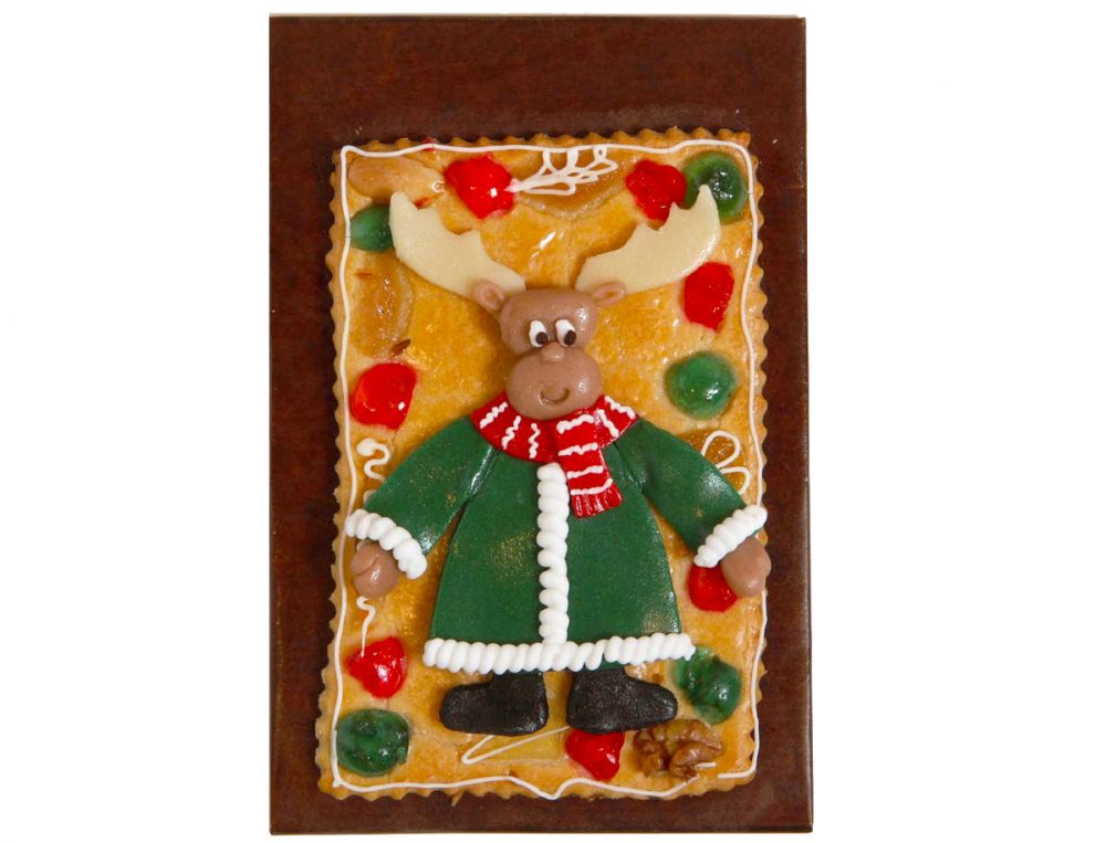 Diese Gebäckplatte setzt auf den Elch als klares Wintermotiv und wirkt dadurch rustikaler und verspielter als Engel- oder Schneemannplatten. Der Elch bringt einen lockeren, nordisch anmutenden Weihnachtscharakter ins Gebäck.