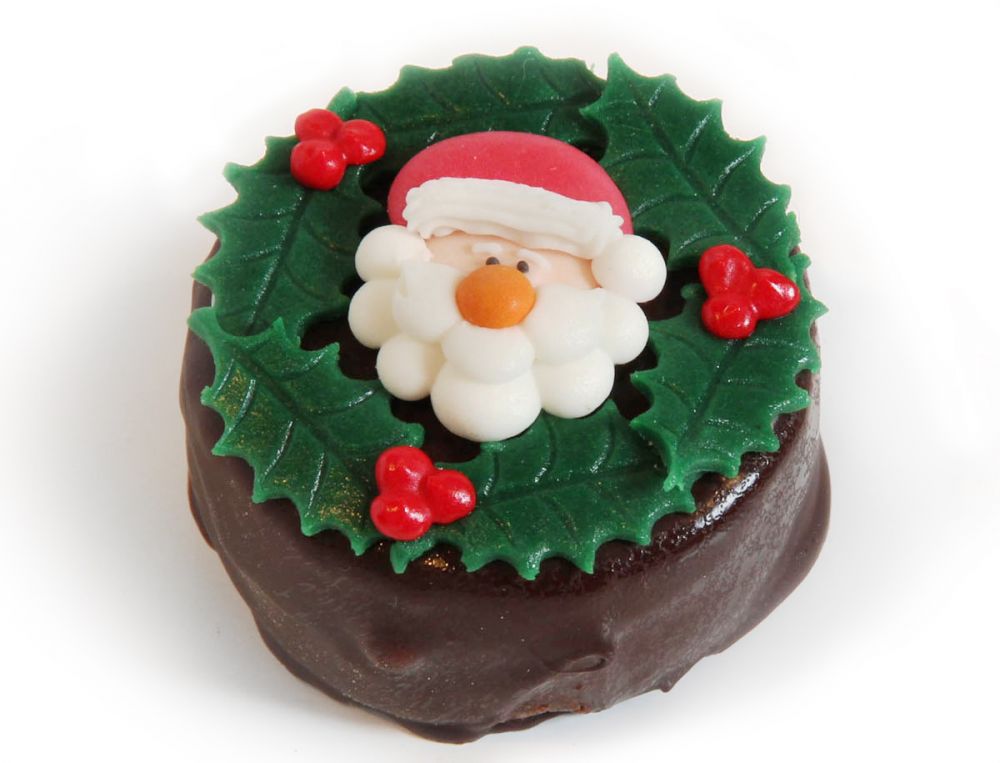Weihnachts-Törtchen mit Nikokopf und Ilex · direkt auf Nikolaus bezogen